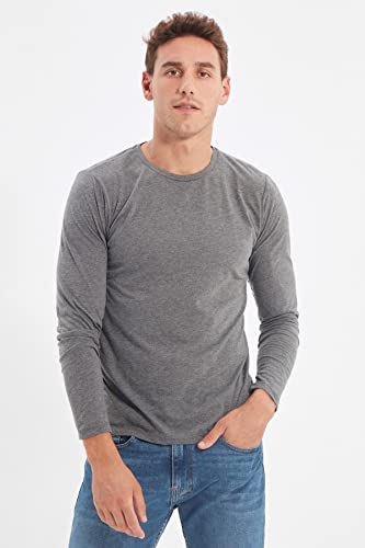 Trendyol T-Shirt in Tessuto Girocollo Standard Basic Uomo Camicia, Antracite, XL