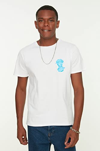 Trendyol White Male Regular Fit Bicycle Collar-Maglietta a Maniche Corte con Stampa T-Shirt, Bianco, XL Uomo