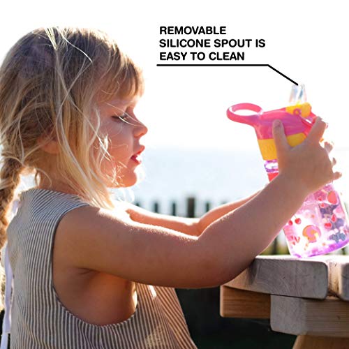 Bicchiere di facile presa con un pop-open no Spill beccuccio morbido, questo bicchiere permette flusso d' acqua liberamente, rendendo più facile bere come una grown-up. maniglia può essere tenuta su o utilizzato come un gancio.