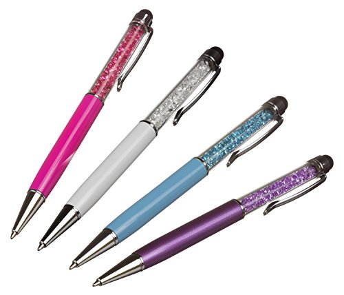 Trendz TZGSWH Penna Glitter a Scatto e Stilo per Touch Screen, 2-in-1, Compatibile con Smartphone e Tablet, Bianco
