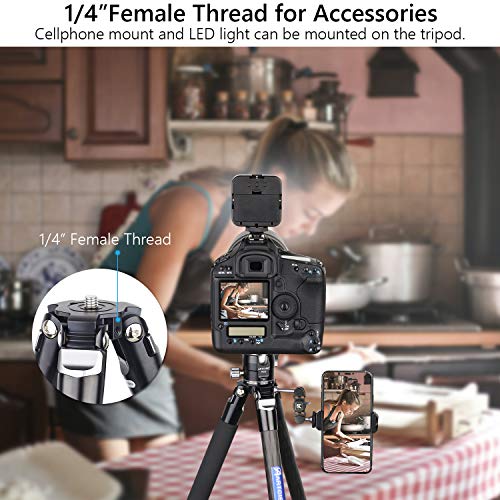 Treppiede in fibra di carbonio da 162 cm, treppiede da viaggio ARTCISE CS50C con testa a sfera a basso profilo da 35 mm e due piastre a slitta rapida da 1/4" per fotocamera, carico massimo 20 kg