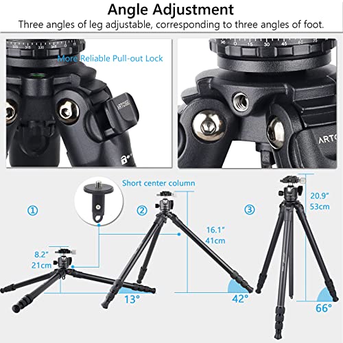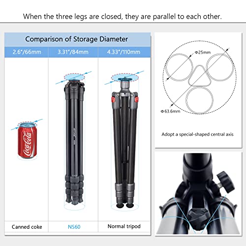 Treppiede per fotocamera da 165 cm, treppiede da viaggio compatto ARTCISE NS60 con testa a sfera a basso profilo da 36 mm e borsa per il trasporto per fotocamera DSLR, videocamera