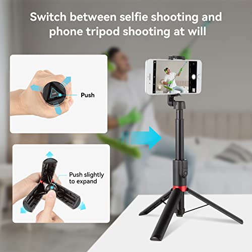 Telecomando Bluetooth staccabile: scatta selfie di gruppo senza preoccuparti di tenere il bastone saldamente in mano. Portata di controllo: 10 m, si adatta alla maggior parte dei telefoni iOS/Android.