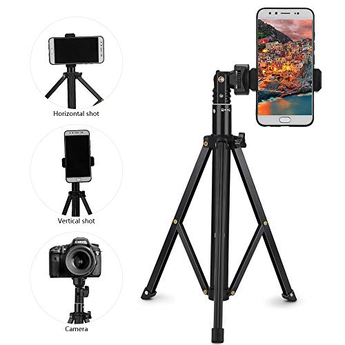 Treppiede Smartphone Alto, 130CM Estensibile Bastone Selfie Stick Lega di Alluminio con Adattatore per Treppiede Cellulare, Cavalletto per iPhone/Samsung/Huawei/Gopro/Fotocamera per Streaming Live