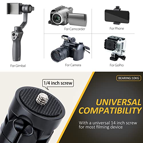 Compatibilità: mini treppiede è dotato di filo standard da 1/4 di pollice, facile da installare e smontare. Compatibile con fotocamera digitale, DSLR, camcorder, telefono, GOPRO, Webcam, Gimbal, ecc.