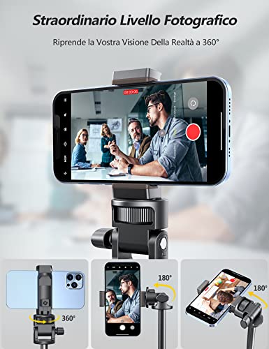 【Eccezionale Supporto Per Il Telefono】È possibile aprire il supporto del telefono a qualsiasi larghezza con una sola mano, non solo è più facile da usare, ma è anche meno probabile che le dita si aggancino rispetto ad altri supporti del telefono. Il Treppiede Smartphone è dotato di due fori per la commutazione, rotazione di 360° e regolazione di 180°. Il supporto per telefono è dotato di un cuscinetto in silicone antiscivolo, di dimensioni comprese tra 5.5 e 9 cm.
