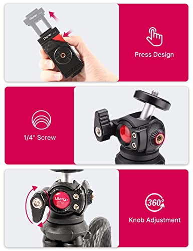 Treppiede Smartphone, ULANZI FT-01 Cavalletto per Smartphone Portatile, Treppiede per Cellulari con testa 360 °, Treppiedi Smarthphone Flessibile per iPhone, Huawei, Xiaomi per Video o Foto