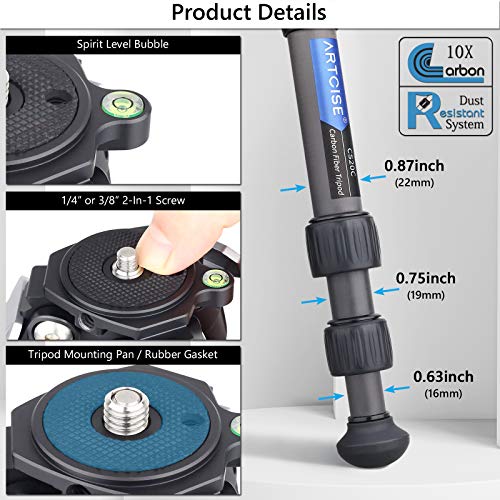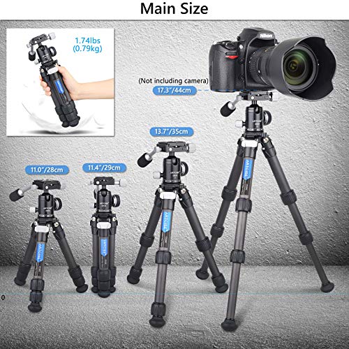 【Portatile】 Realizzato con materiali in fibra di carbonio ad alta resistenza e di alta qualità, pesa solo 0,79 kg. altezza di piegatura di soli 11,4 pollici/29 cm. Puoi metterlo nella tasca laterale dello zaino da viaggio e portarlo dove vuoi. Può essere un selfie stick o un treppiede. Con il supporto per telefono incluso, puoi condividere facilmente ogni momento del tuo viaggio.