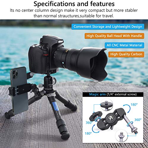Treppiede da tavolo portatile in fibra di carbonio, treppiede per fotocamera, mini treppiede e testa a sfera CNC Carico massimo in metallo 22 libbre / 10 kg