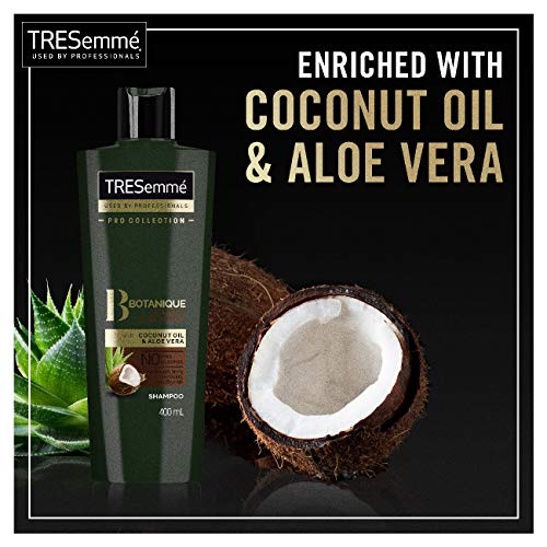Tresemme Botanique Nourish and Replenish Shampoo è infuso con olio di cocco e aloe vera, rinomato per le loro proprietà nutrienti