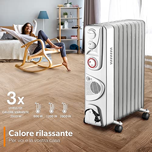 TRESKO Radiatore ad olio 2000W con termostato, riscaldamento elettrico a 9 costine, a risparmio energetico, radiatore mobile con timer da 24 ore, protezione da surriscaldamento e 3 livelli