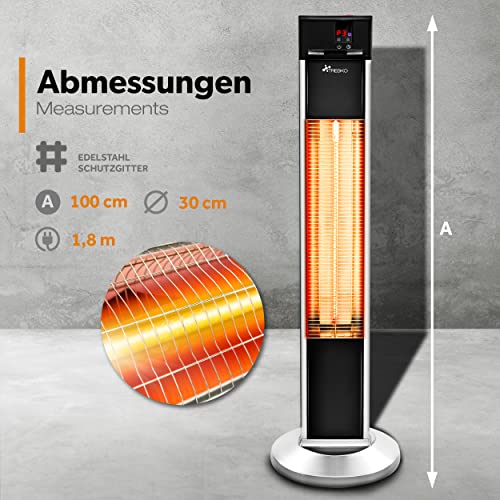 TRESKO Stufa a Infrarossi 2000W a Torre con Telecomando | Riscaldatore elettrico a Infrarossi con 3 Livelli di Calore | Stufa elettrica a infrarossi da Terrazzo per Fuori e Dentro