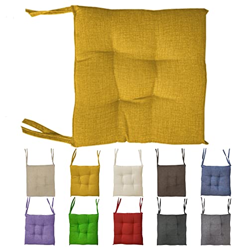 Home Tresor - Coprisedie Cuscini Sedie Cucina Set da 4 | Cuscini Sedia da Giardino, Sala Pranzo, per Interni ed Esterni Morbida Imbottitura Confortevole 6 Cm. (Giallo)