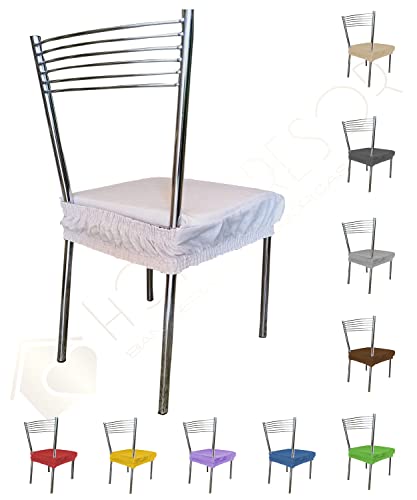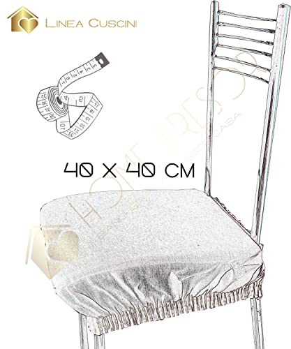 Home Tresor - Cuscino Sedia Con Fascia Elastica Sfoderabile e Lavabile, Fodera Copriseduta Imbottita senza Schienale Made in Italy in Set (Avorio, 6)