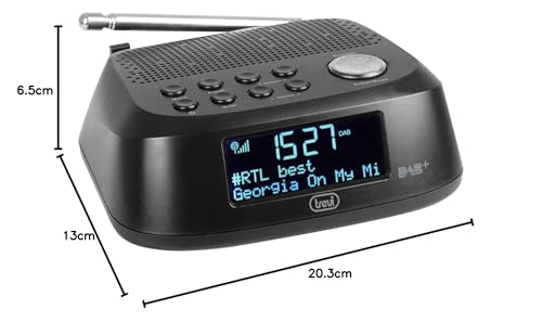 Trevi RC 80D4 DAB, Radiosveglia Digitale da Comodino con Ricevitore DAB/DAB+, Funzioni Sveglia Snooze e Sleep, 30 Stazioni Memorizzabili DAB / DAB+ e FM RDS, Nero