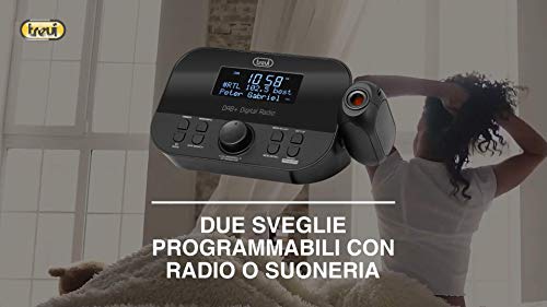 Trevi RC 85D8 DAB Radiosveglia Elettronica con Proiezione Orario e Ricevitore Digitale DAB/DAB+, Grande Display LED, Sveglie Programmabili, Funzione Snooze, Funzione Sleep