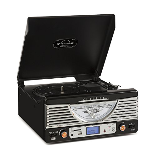 Trevi TT 1062 E Sistema Stereo Giradischi Vintage con Encoding, Mp3, USB, Aux-In, Bluetooth, Radio FM, Presa Cuffia, Nero