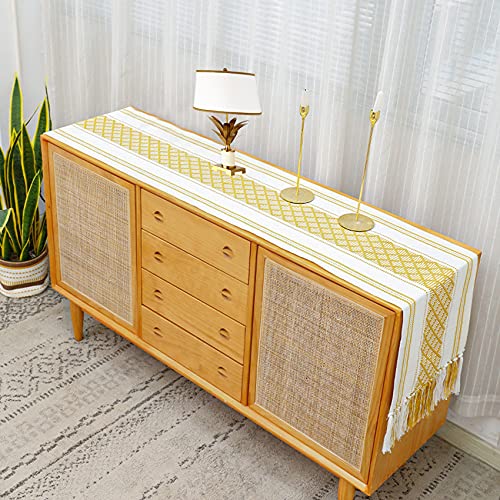 Materiale dei Runner da Tavola:Runner da tavolo Boho sono realizzati con 55% poliestere,45% cotone, spessore moderato, resistente.Corridori da tavolo intrecciati fatti a mano ideali per decorazioni da tavola di nozze bohémien per il ricevimento,e anche perfetto per la vita quotidiana, aggiungendo quel look rustico unico al tuo arredamento.