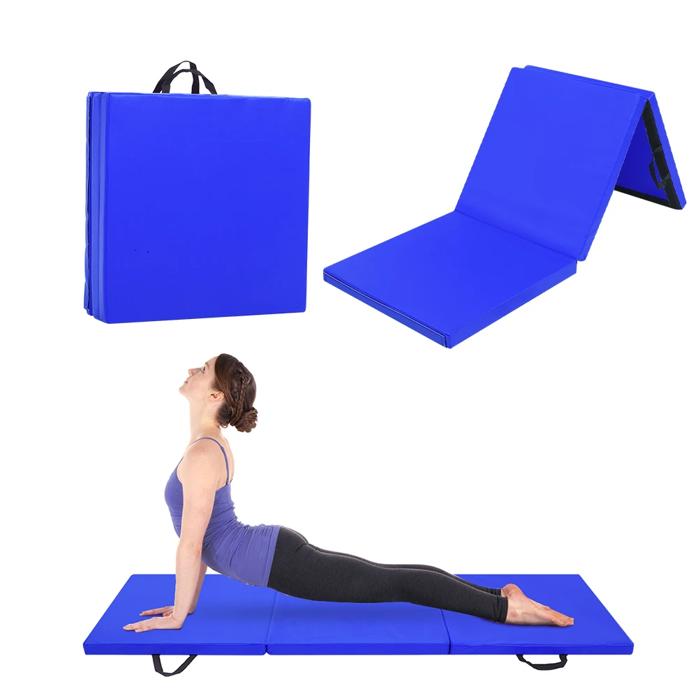 6'x2'x2" Tri-fold Gymnastics Yoga Mat with Hand Buckle Blue
