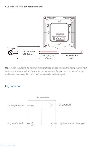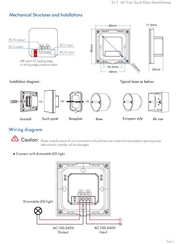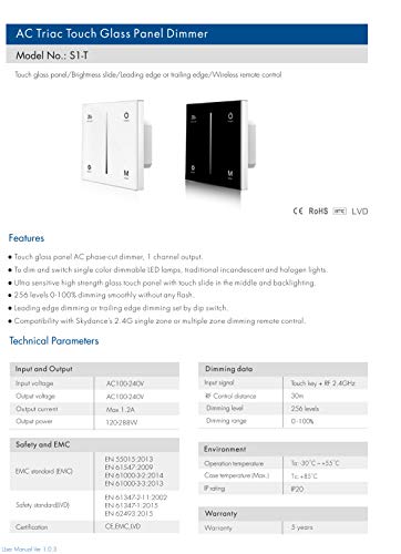 1. Touch glass panel AC phase-cut dimmer, 1 channel output.