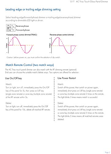 5. Leading edge dimming or trailing edge dimming set by dip switch.