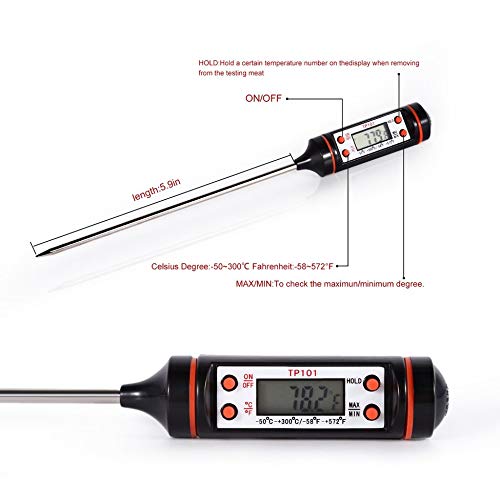 Triamisu Cottura Digitale della Cucina Sonda per Alimenti Carne Cucina Cottura BBQ Sensore termometro Selezionabile Attrezzatura di misurazione Alimentare-Nero + Rosso + Argento