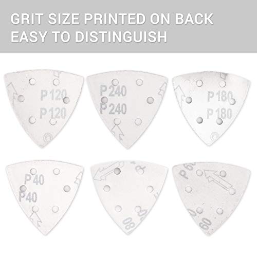Triangoli Abrasivi Delta,120 pezzi,Carta Vetrata Triangolari 6 fori,93 x 93 x 93 mm,20xgrana 40/60/80/120/180/240,per levigatrici delta,Fogli Abrasivi,Abrasivi Triangolari,Carta Abrasiva
