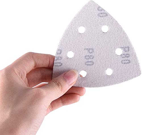 Triangoli Abrasivi Delta, 72 pezzi, 6 fori, 93 x 93 x 93 mm, con Velcro15 x grana 40/60/80/120/180/240, per levigatrice a delta, Fogli Abrasivi, Carta Abrasiva