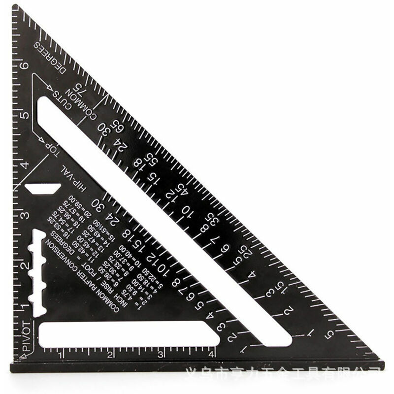Multifunzione: il righello metrico triangolare può essere utilizzato come goniometro, mitra, traccialinee, guida per sega e quadrato di tre metri, come cornice e come righello, ideale per tutti i progetti di costruzione e ristrutturazione Dimensioni: 26 cm * 18,6 cm * 18,5 cm, Peso: 225 g Alta qualità: il quadrato da carpentiere è realizzato in lega di alluminio di alta qualità con finitura nera opaca per prevenire l'abbagliamento, resistente alla corrosione e durevole, resistente alla rottura Adatto per: goniometro triangolare utile per hobbisti, costruttori di case, fabbricanti, artisti Alta precisione: il suo tagliente spesso può essere utilizzato direttamente con la sega contro il quadrato per eseguire tagli trasversali o smussati sull'aiuto del quadrato della scala del goniometro incisa, consentendo di segnare rapidamente e accuratamente le linee di taglio sulle traverse Maggiori dettagli: Angolo travetto in alluminio da 7 pollici Corpo in alluminio solido con bordi lavorati per