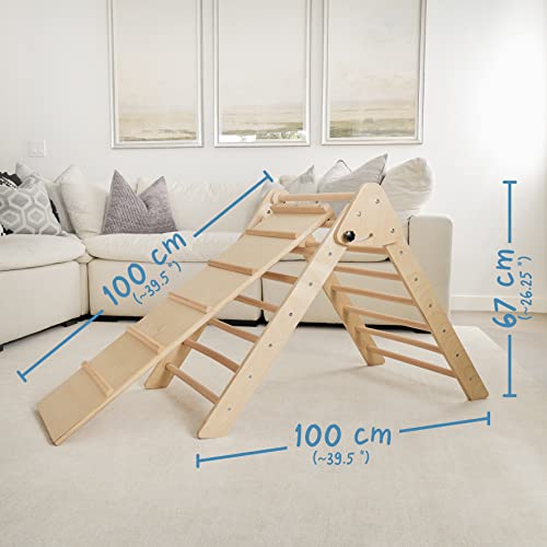 Triangolo Pikler Pieghevole con Rampa Trasformabile in Scivolo - Set Arrampicata Montessori per Lo Sviluppo Motorio dei Bambini - Struttura Gioco in Legno per Interni ed Esterni - Design Robusto