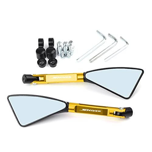 YXSM Moto Triangolo Specchietto Retrovisore CNC Alluminio Blu Anti-riflesso Lente Specchietti Retrovisori Laterali con Logo per Aprilia Shiver GT Shiver 750 Shiver 900 2007-2016 (Colore: Oro)