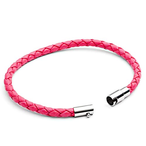 Tribal Steel Bracciale da donna in pelle neon rosa sottile intrecciata da 19cm