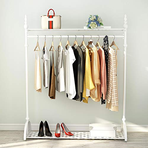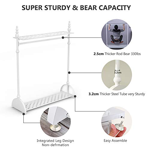 Tribesigns - Appendiabiti resistente, con 2 livelli di ripiani, in metallo, misura 122 cm, adatto per appendere vestiti, riporre scarpe o da usare come espositore, White, 168 x 40 x 120 cm