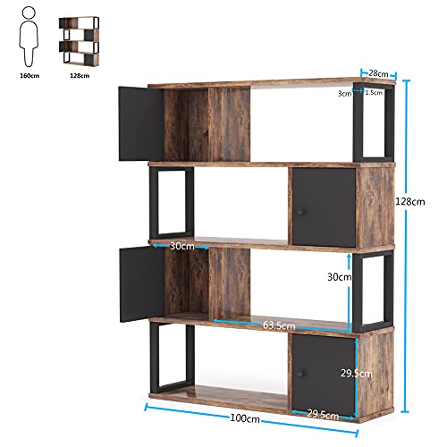 Tribesigns, libreria industriale a 4 ripiani con 4 ante e ripiani aperti, librerie in legno vintage per casa, ufficio