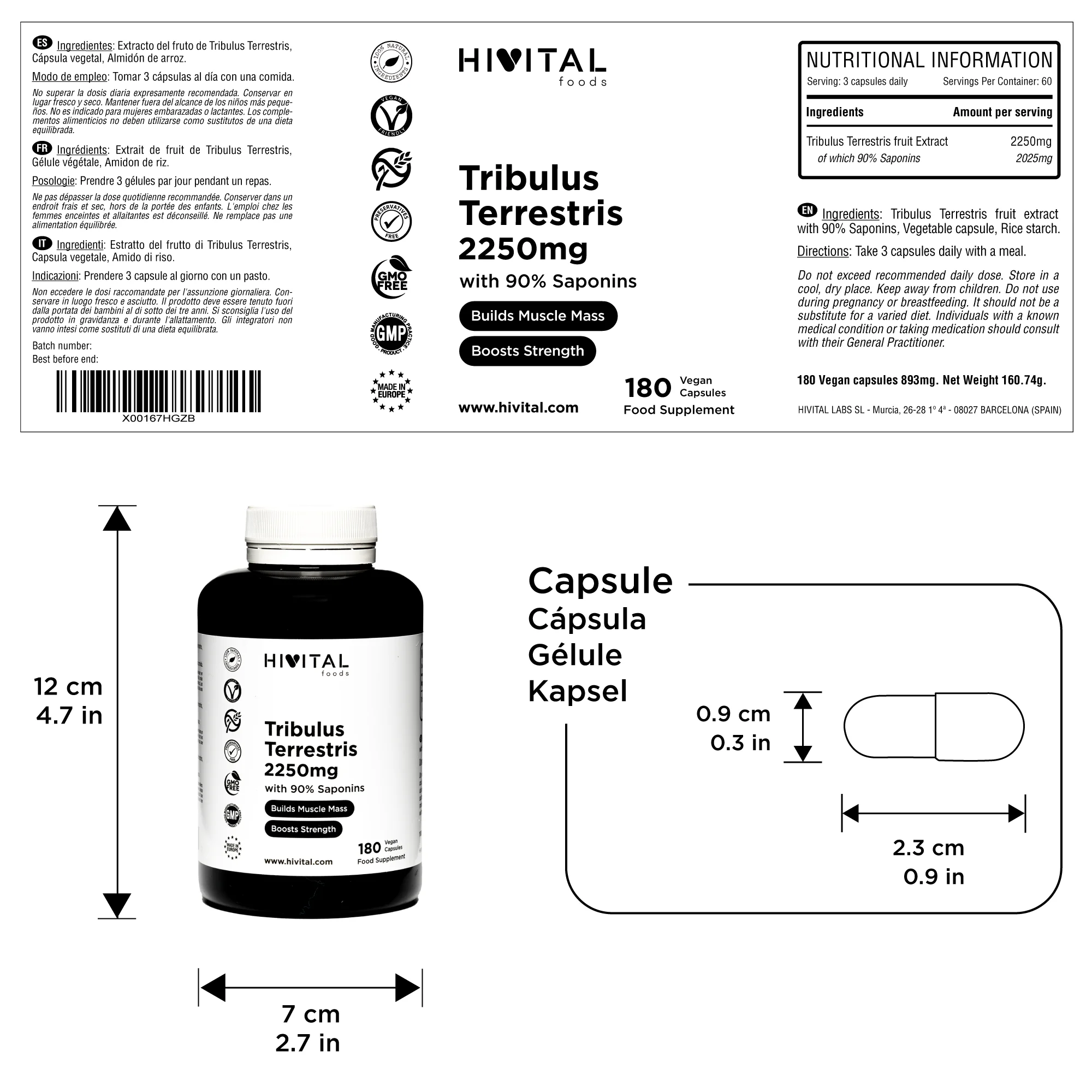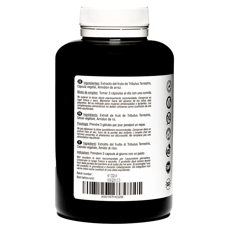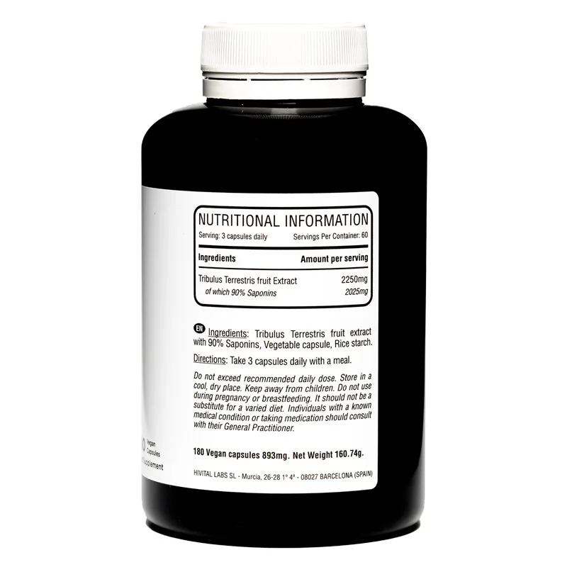 Tribulus Terrestris 2250 mg | 180 capsules vegan | 100% Natural with 90% saponins | Increases testosterone and the mass muscle