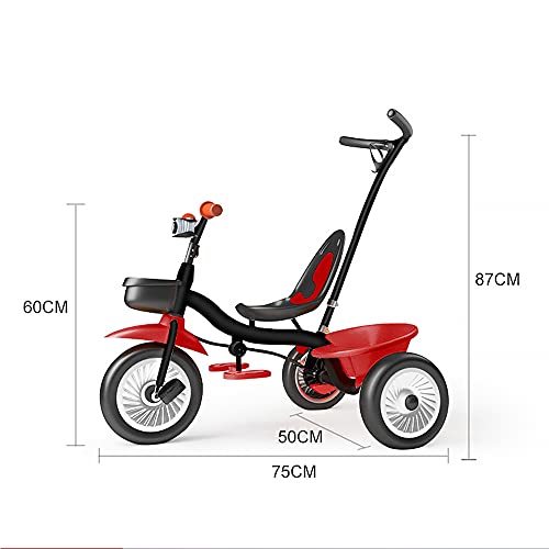 4 IN 1 Triciclo per Bambini con Maniglia di Spinta per Genitori per 1-3 Anni Ragazzi Ragazze Triciclo per Bambini Bicicletta Equilibrio Sedile e Maniglia Regolabili((Nero e rosso) 75 * 50 * 87 cm)