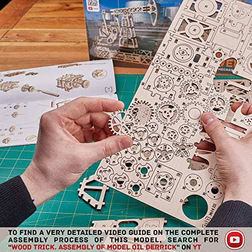 Wood Trick Oil Derrick Rig Toy - Oil Pump Jack Mechanical Model to Build - 3D Wooden Puzzle, Assembly Toys - STEM Toys for Boys and Girls