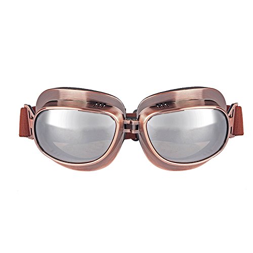 Triclicks Occhiali da Moto/Aviatore/Motocross/Casco/Protezione/Sport Vintage Classico Bronze, Lenti Argento