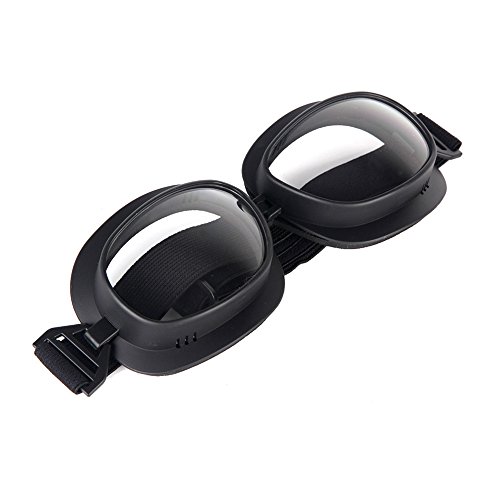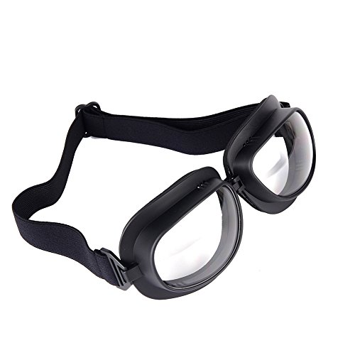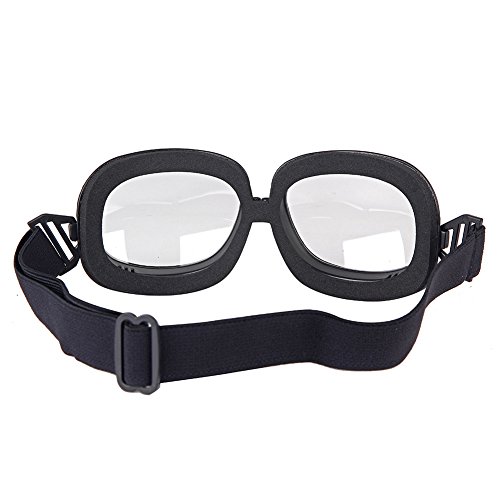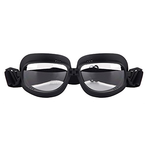 Triclicks Occhiali da Moto/Aviatore/Motocross/Casco/Protezione/Sport Vintage Classico Nero, Lenti Trasparente