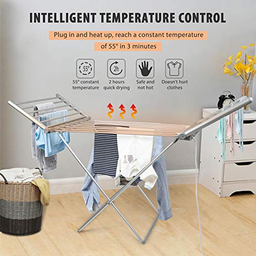 Triclicks Stendino Elettrico Riscaldato da Pavimento Antiruggine Stendibiancheria a Cavalletto Stendino Verticale Estensibile Stendibiancheria a Torre da Interni con Ale Laterali