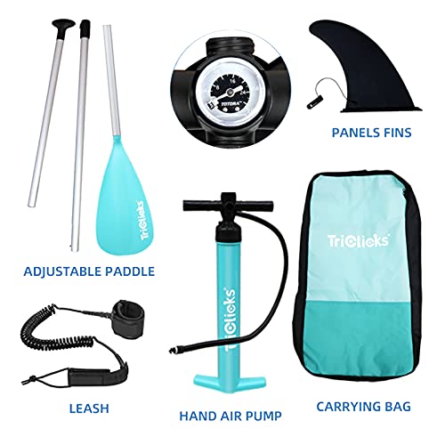 Triclicks Tavola da Paddle Surf Paddle Board (15 cm di Spessore) Pagaia, Pompa, Sacca Trasporto, kit di riparazione, Universale SUP all Round | Bottom Pinna| Antiscivolo Deck 10'9"