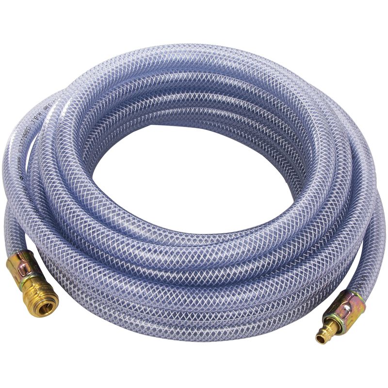 Set tubo aria compressa con inserto in tessuto. Tubo in morbido cloruro di polivinile, trasparente. Lunghezza: 10 metri. Diametro: 13 mm. Elevata resistenza meccanica e adesione, bassa perdita di flusso. Resistente allo sbiadimento, senza cadmio, sottovuoto, grado industriale. Applicazioni: Attrezzatura di compressori. Aree di utilizzo: Aria compressa, trattamento delle acque reflue