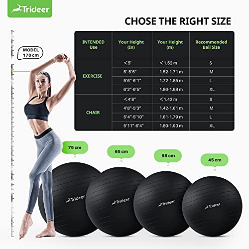 Trideer 45-85 cm Multiuso Palla da Fitness con la pompa (11 colori), Anti-Scivolo & Anti-Rottura,500KG Super Spesso Palla per lo Ginnastica, Yoga, Pilates, Sedia,Fitness, Fisioterapia, Palestra e esercizi per Ufficio e Casa.(Deep Blue, 75cm)