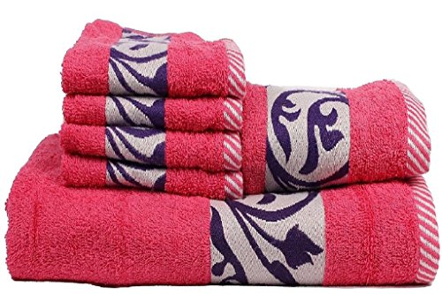 Trident floreale Collection 425 GSM set di asciugamani, Cotone, Pink, 6 Pieces Towel Set