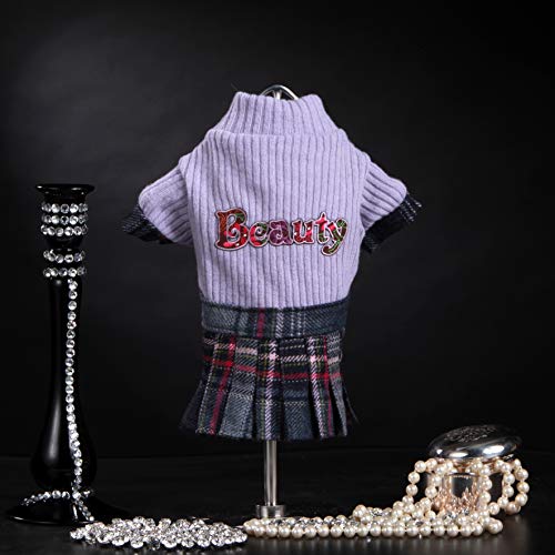 Trilly tutti Brilli Ybca Abito in Lana con Gonna Scozzese e Applicazione Termica Lilla, S - 1 Prodotto