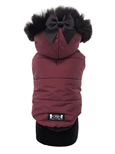 Trilly tutti Brilli Emma Piumino con Cappuccio, Bordo in Pelliccia, Interno in Peluches ed Applicazione Fiocco Spilla, Bordeaux, M