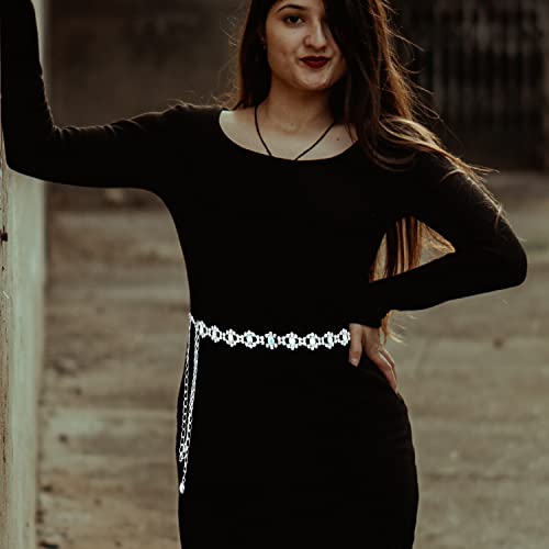 DESIGN ELEGANTE: questa cintura in argento è un astuto pezzo di accessorio impreziosito da strass AB. La luce catturerà e rifletterà su questa cintura facendola brillare in milioni di colori e brillare ad ogni tua mossa. Il blocco della chiusura è un modo elegante per bloccare la cintura in posizione. Indossa questo accessorio come accessorio sopra gli abiti per aggiungere la giusta quantità di eleganza e glam al tuo outfit