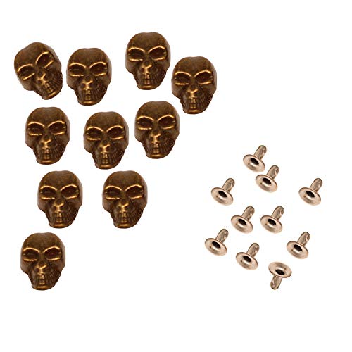 Trimming Shop Borchie a forma di teschio in metallo con rivetto per lavori in pelle, decorazione di abbigliamento, progetti fai da te, accessori punk e gotici (bronzo, 8 mm x 13 mm, 10 pezzi)