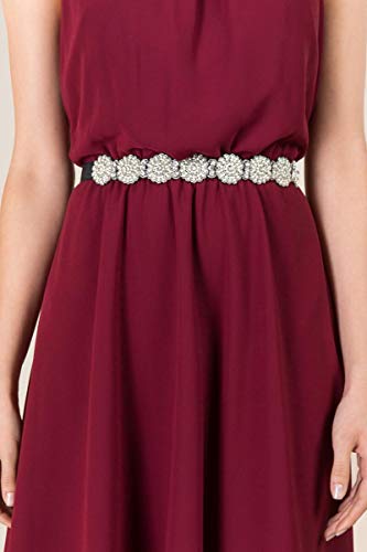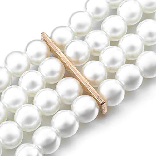 Trimming Shop Donna 4 Fila Bianco Perla Perlina Girovita Cintura per Casual e Festa Abbigliamento con Regolabile Moda Ovale Forma Diamante Fibbia, Accessorio alla Moda, 57cm