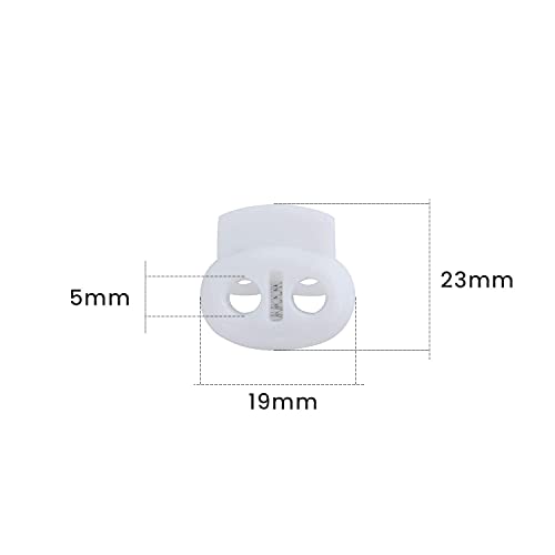 Trimming Shop - Fermacorda a olivetta con doppio foro e bottone a pressione largo per lacci, borse, paracord, giacche, bagagli, bianco, 2pcs
